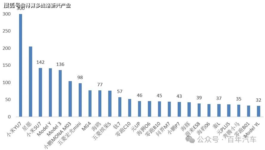3、11月份新能源汽車銷量——車型結構(排名前20車型)