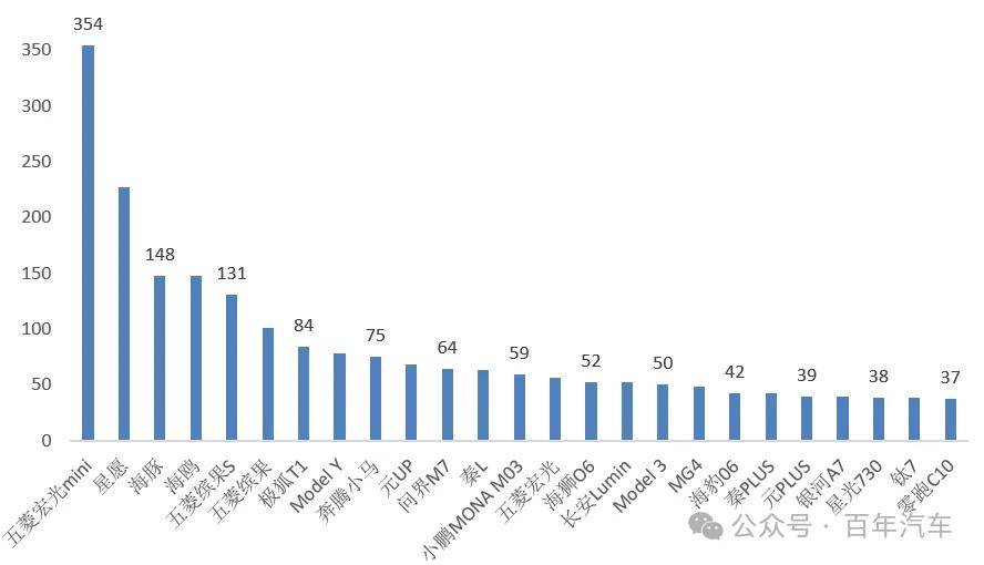 3、12月份新能源汽車銷量——車型結構(排名前20車型)