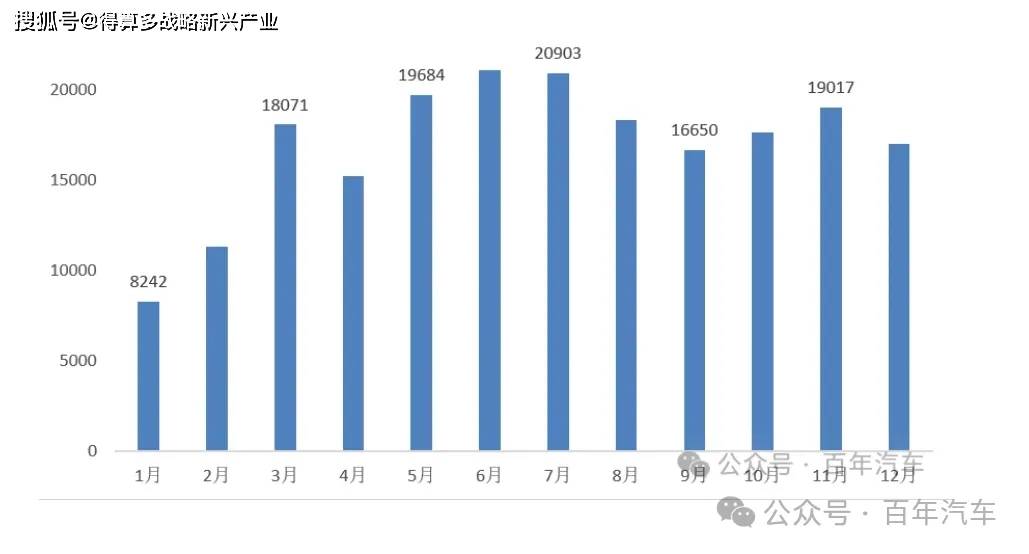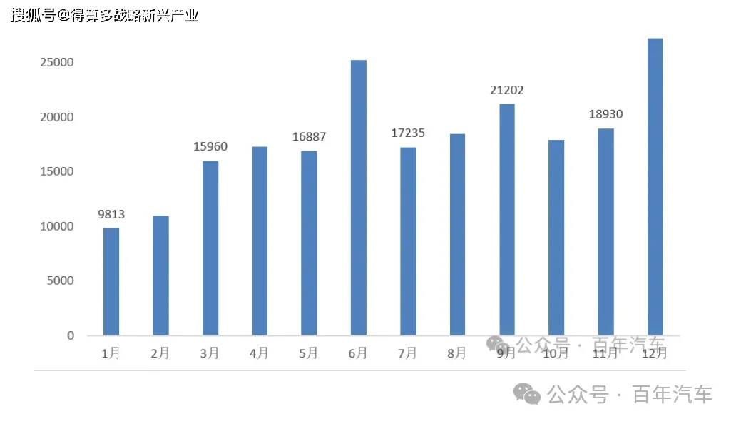 25、天津市1-12月新能源汽車銷量(上險量)數據統計